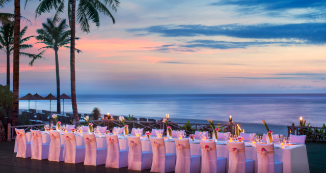 Framed by brilliant white sands, lush tropical forests and captivating Indian Ocean views, Located on the most beautiful beach in Nusa Dua, the St. Regis Bali Resort is one of the most romantic and inspiring wedding venues in Indonesia. A wedding at St. Regis can accommodate up to 50 persons. Happy Bride and Groom can choose whether they want to have Beach Garden Wedding venue, or Beach Front Wedding venue.